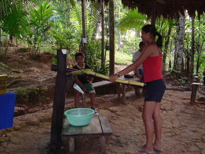 Aus dem Zuckerrohr wird der Saft gepreßt und dann zu Rum veredelt